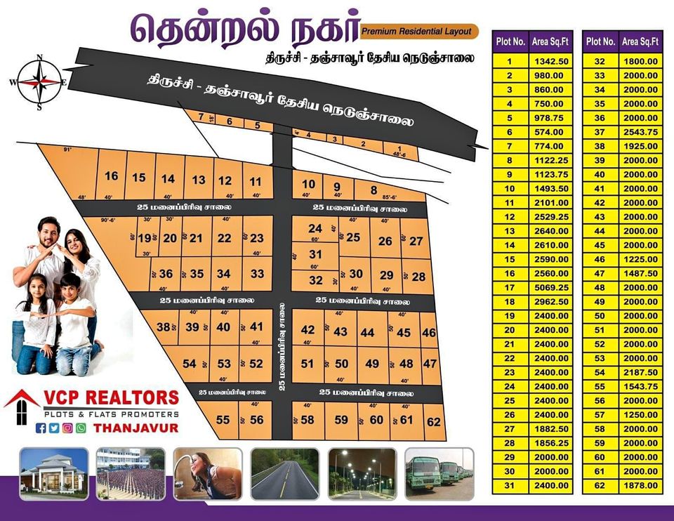 DTCP Approved Plots Available at Thendral nagar Thanjavur To Trichy National Highway Nh 83 on the highway service road our project near to Sengipatti thanjavur .