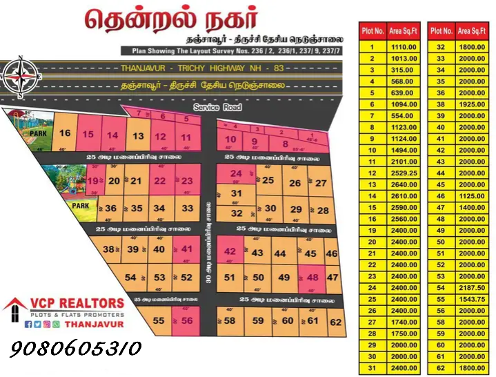 VCP REALTORS DTCP APPROVED RESIDENTIAL PLOTS AT SEGIPATTI Project Name : THENDRAL...